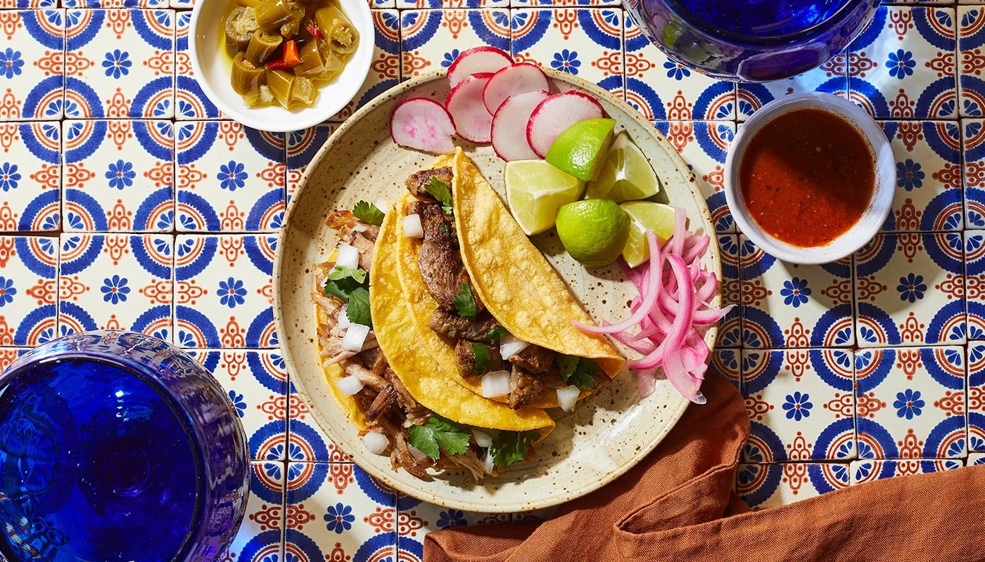 Choose your set of 3 tacos and spice it up with some add ons and a side.